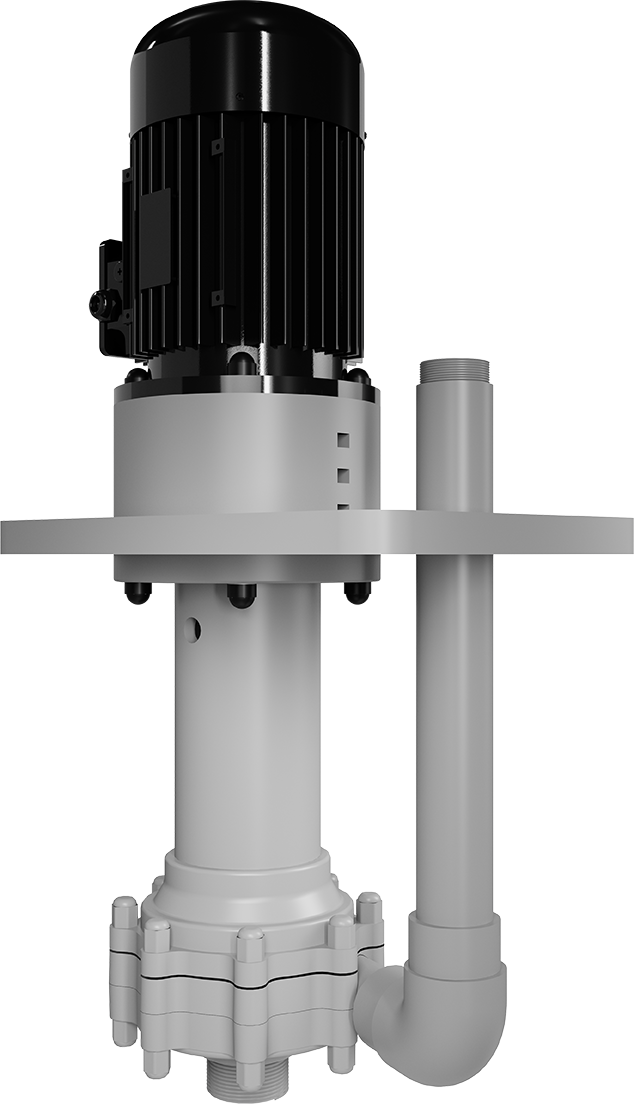 Vertical centrifugal pumps are for transfer and circulation of corrosive and aggressive fluid. Vertical pumps contain a vertical shaft that directly drives the impeller. For the cantilever design, shaft runs contactless so that there is no need for shaft seals and additional bearings. Due to its vertical structure, it is possible to make suction from the bottom of the tank and work in the fluid. In this